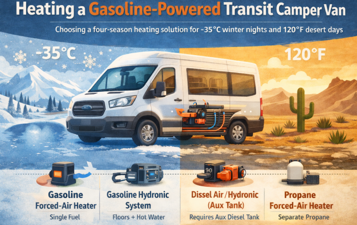 Heating a Gasoline-Powered Transit AWD Camper Van for True Four-Season Use
